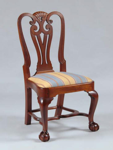 a Newport Queen Anne chair is shown in mahogany, the most suitable
