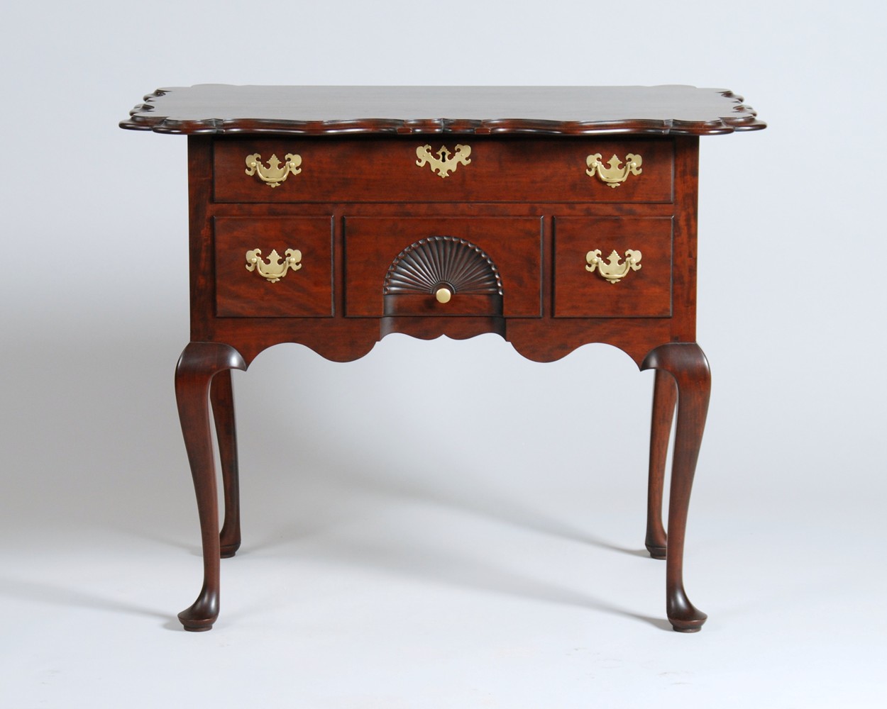 In the manner of the Goddard family of cabinetmakers, this lowboy
