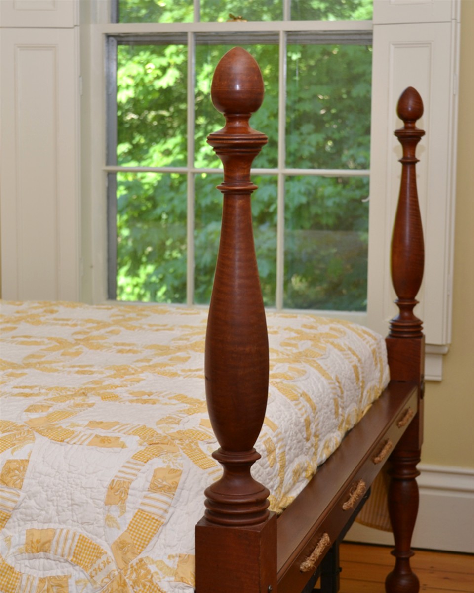 including this circa 1820 low-post Sheraton bed in tiger maple with the