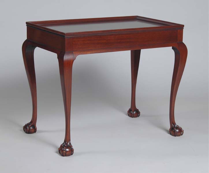 which end in pad feet. The top has an applied cove-molded tray edge. In